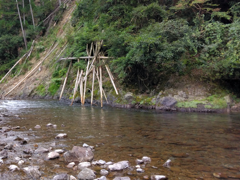 温泉元湯のチョイ上流に仕掛けが張られていました。