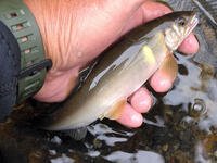 すぐ下のトロ場も、かなりの減水でジッと我慢の釣りです。