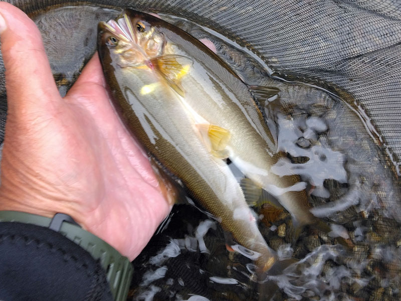 良く見ると仕掛け上流側に、わんさかアユがいました。